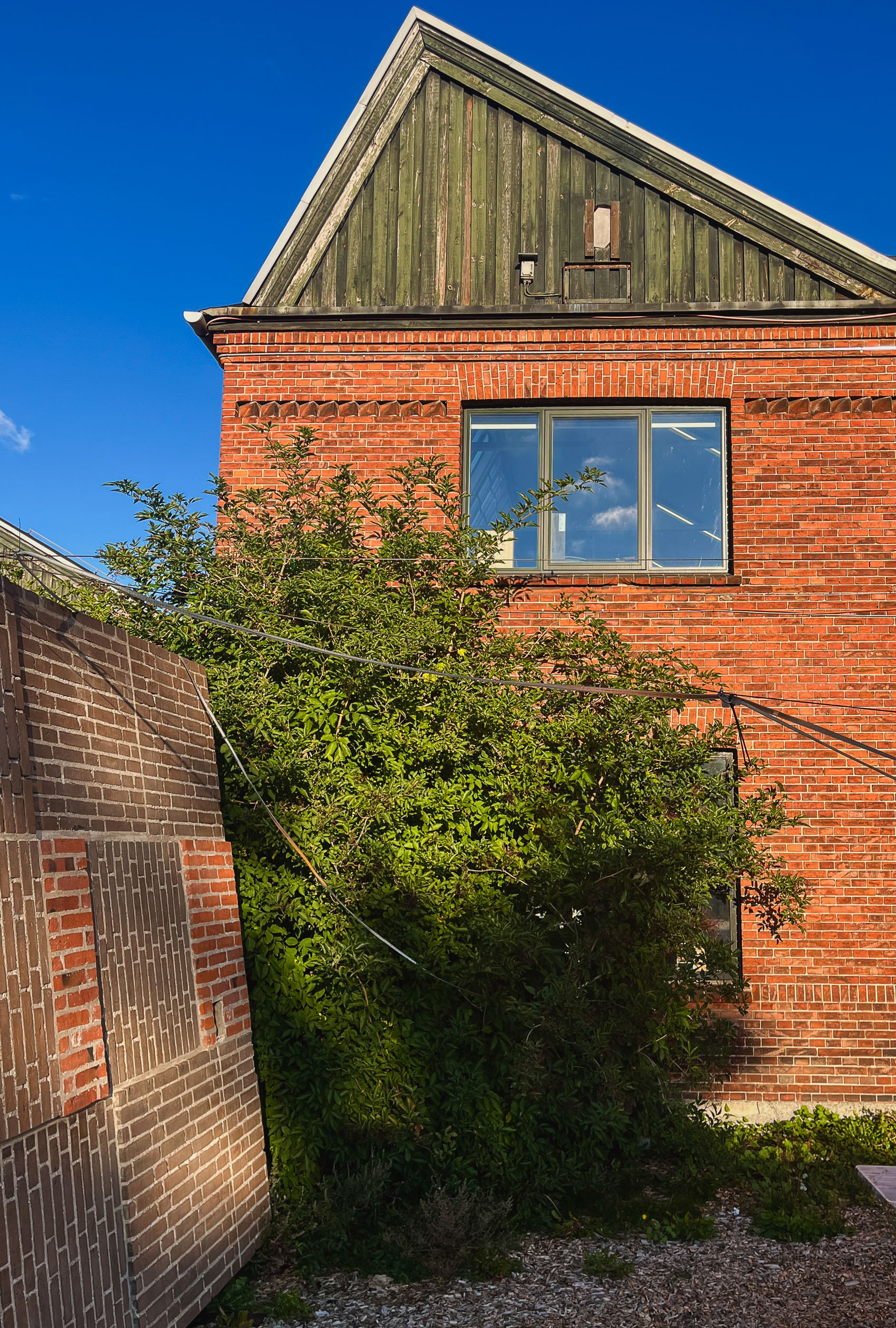 Kontoret ligger i en gammel industribygning sør i København. Lokalet er er ombygget til dagens bruk, men med tydelige spor etter tidligere romfunsksjoner. Vi er omringet av grønne planter, fullskala mock-ups og materialprøver. De siste ukene har jeg arbeidet med plan-og volumstudier for et sommerhus samt modellbygging av ulike forslag til et annet prosjekt.